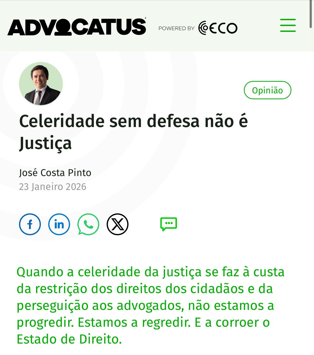 José Costa Pinto é o sócio fundador da Costa Pinto onde presta assessoria jurídica principalmente nas áreas de direito comercial e societário e tem uma vasta experiência em reestruturação societária, fusões & aquisições e private equity. É atualmente Vice-Presidente do Instituto Português de Corporate Governance e Presidente da Mesa da Assembleia Geral do Observatório Português de Compliance e Regulatório.
